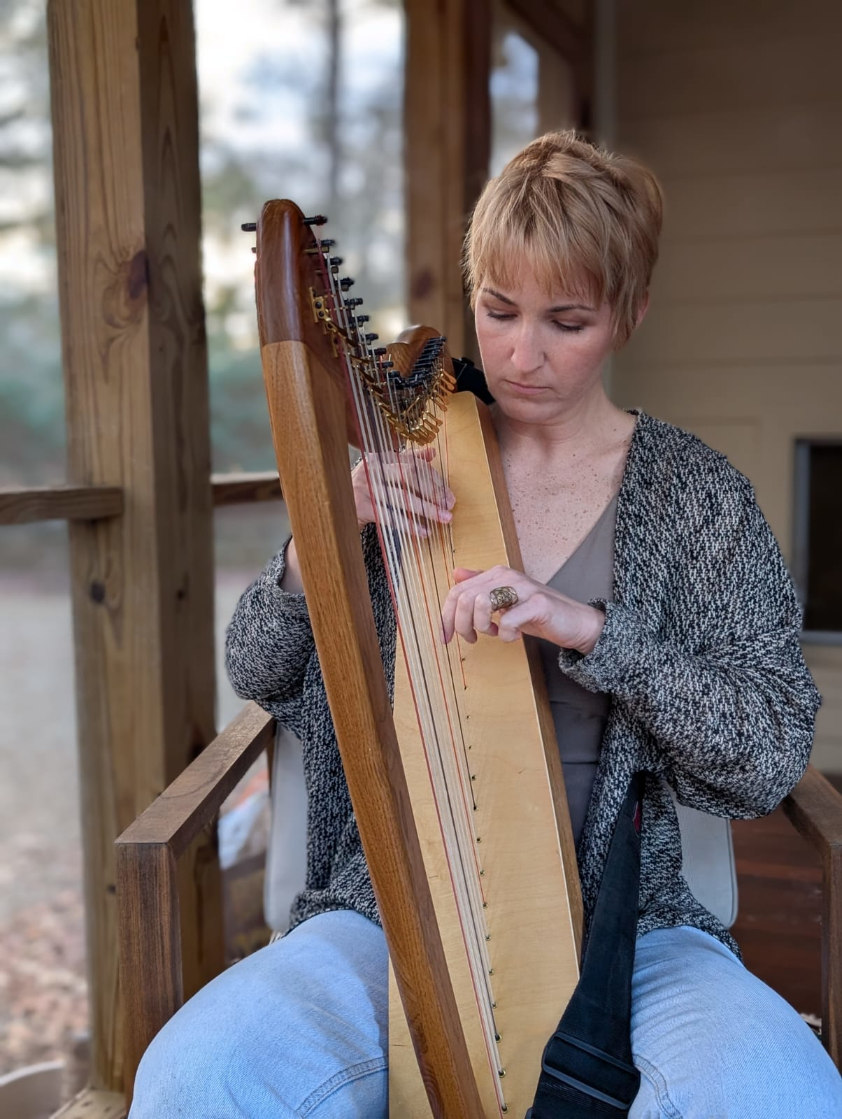 Chelsie Rose used to print song lyrics and tape them to the outside of her glass shower so she could belt her favorite tunes daily. At the age of 7, an angel told her to play harp, so she took lessons with International Award Winning harpist Jan Jennings and continued playing harp and singing on and off throughout her life. Living in China, Chelsie performed full time as a singer and cajon player covering pop favorites. She won first place at the NATS regional singing competition of 2025. She has written songs of friendship, the forest, and an encounter with a baby elephant! Find her on Spotify and at open mics in Durham.