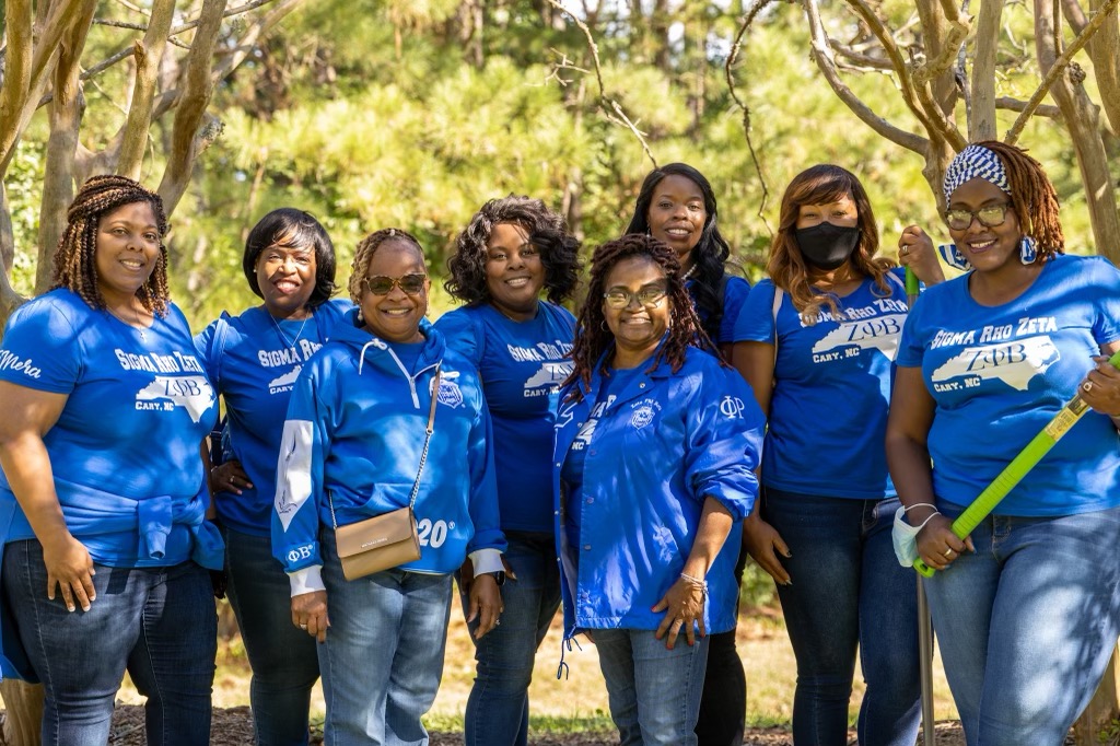 Zeta Phi Beta Sorority was founded on January 16, 1920 at Howard University by the five women shown seated in the image below. It was the first National Pan-Hellenic Council organization to centralize its operations in a national headquarters, first to charter a chapter in Africa, first to form auxiliary groups, and first to be constitutionally bound to a fraternity, Phi Beta Sigma Fraternity, Inc. The sorority takes pride in its continued participation in transforming communities through volunteer services from members and its auxiliaries. Now in its 101st year, the Sorority has more than 125,000 members in hundreds of chapters throughout the world. Cary's chapter is Sigma Rho Zeta, led by its president, LaToya Vick. Members of Sigma Rho Zeta celebrated Earth Day 2021 by planting trees in memory and honor of The Sorority Founders.