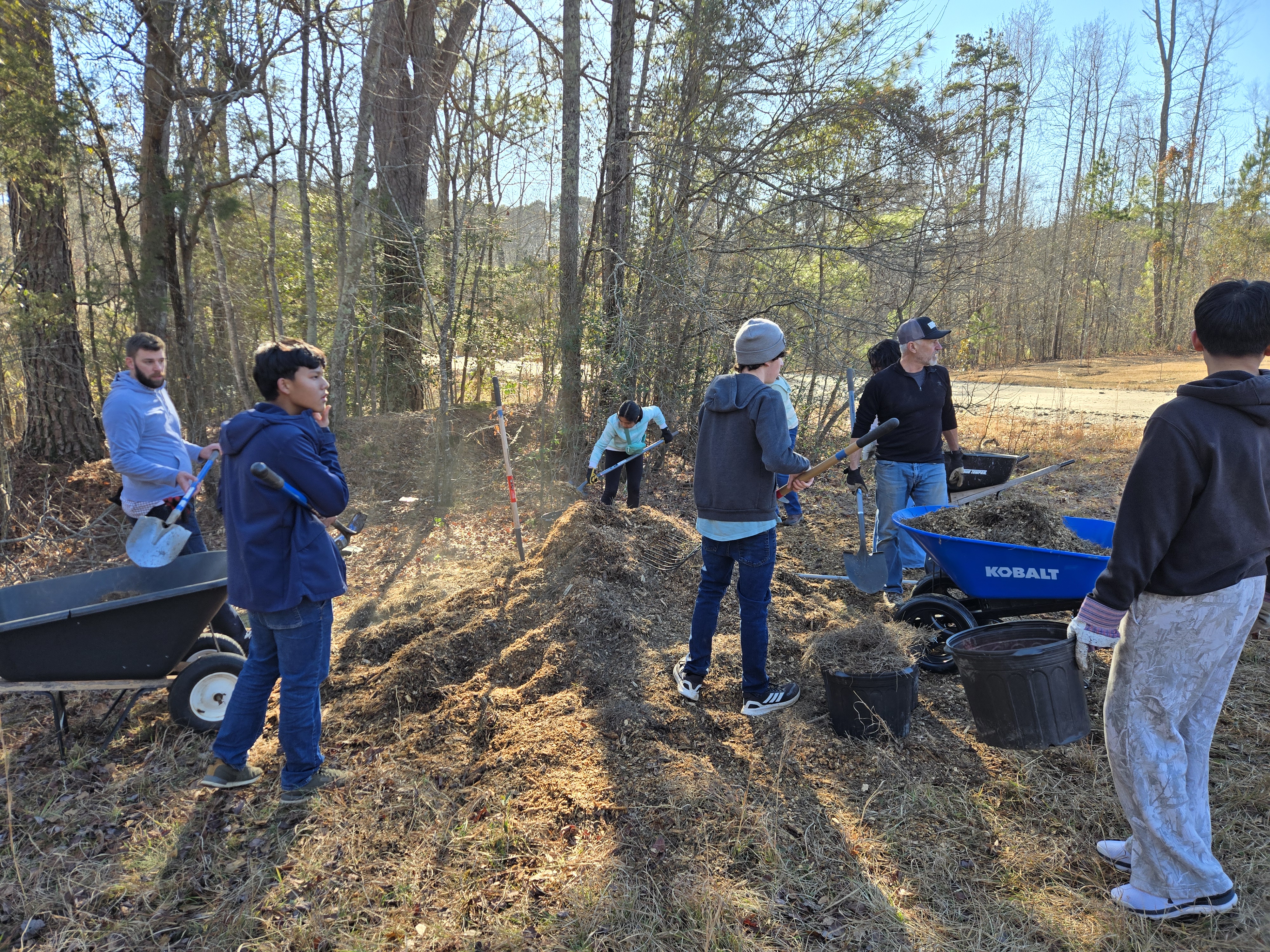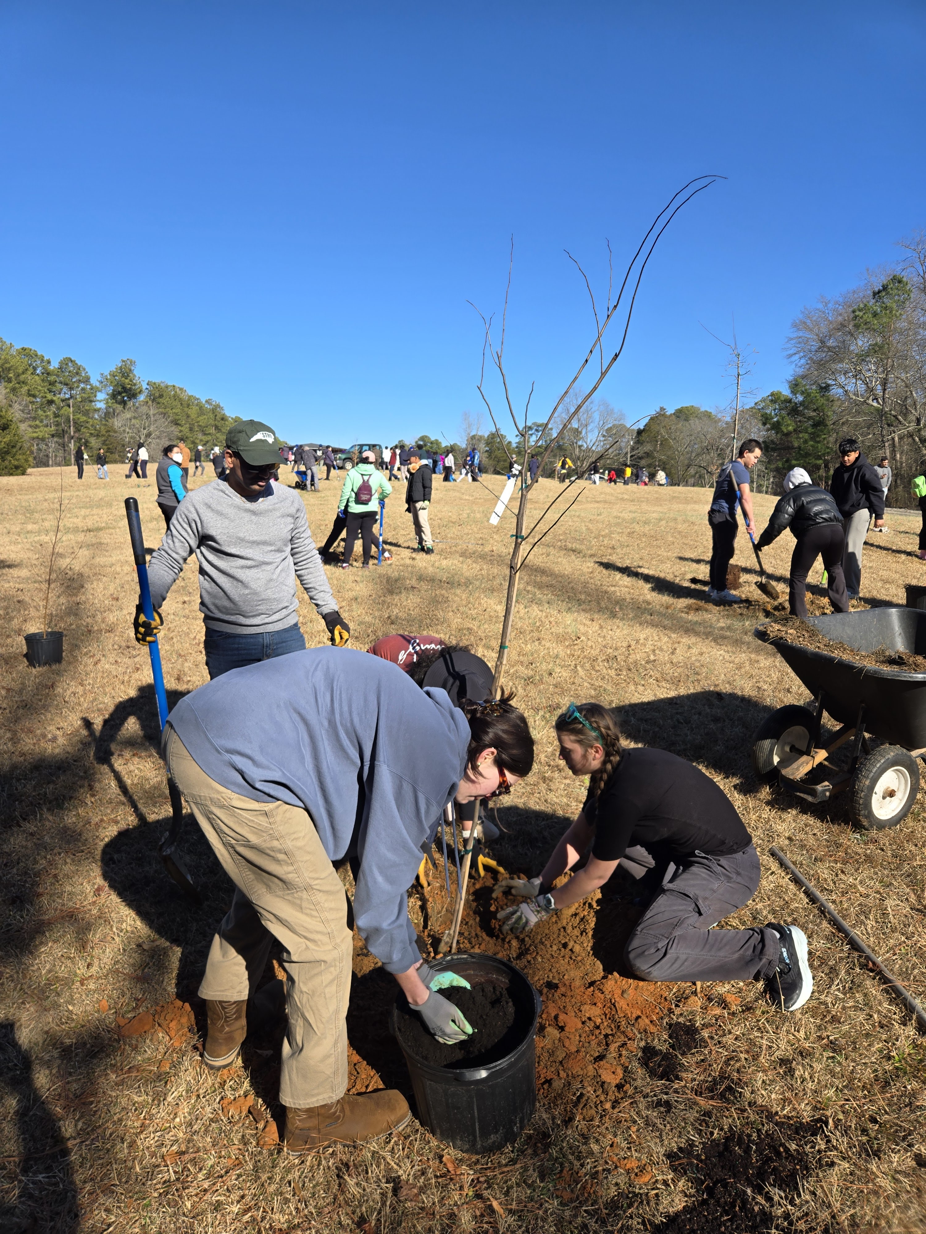 Volunteers led by Dean Krupa and Trees for the Triangle, Inc. plant 12 trees on Day One at the Optimist Farm Tree Archive, November 29, 2025.